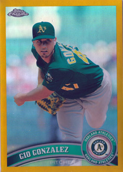 ![]() 2011 Topps Chrome Gold Refractors #56 36/50 |