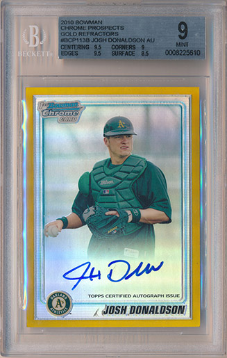 ![]() 2010 Bowman Chrome Prospects Autographs Gold Refractors #BCP113 21/50 BGS 9 |