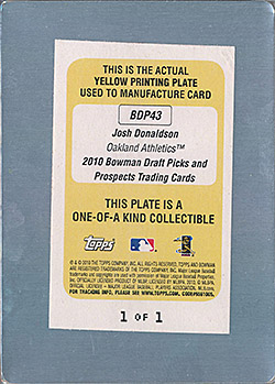 ![]() 2010 Bowman Draft Printing Plate Yellow RC #BDP43 1/1 |