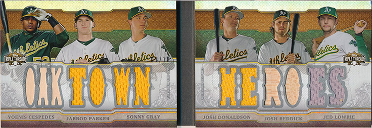 2014 Topps Triple Threads Relic Combos Double #TTRDC8 Cespedes/Parker/Gray/Donaldson/Reddick/Lowrie