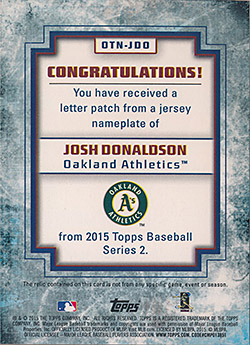 ![]() 2015 Topps Own the Name Relics #OTN-JDO 1/1 |