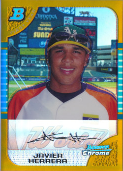 ![]() 2005 Bowman Chrome Draft Gold Refractors #BDP147 Javier Herrera RC 02/50 |