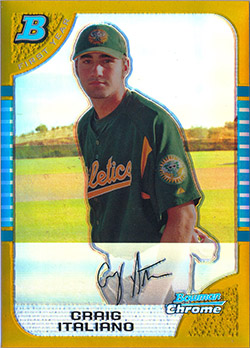 ![]() 2005 Bowman Chrome Draft Gold Refractors #BDP72 Craig Italiano RC 42/50 |
