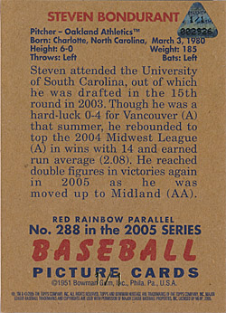 ![]() 2005 Bowman Heritage Red #288 Steven Bondurant RC 1/1 |