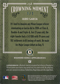 ![]() 2005 Diamond Kings Platinum #256 Jairo Garcia 1/1 |