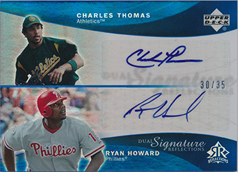![]() 2005 Reflections Dual Signatures Blue #CTRH Charles Thomas/Ryan Howard 30/35 |