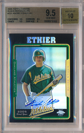 ![]() 2005 Topps Chrome Black Refractors Autograph #221 Andre Ethier RC 117/200 BGS 9.5 |