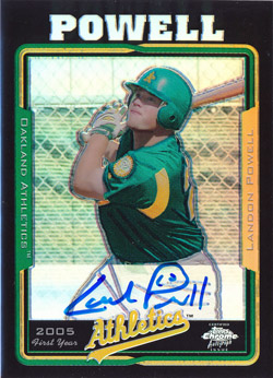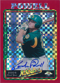 ![]() 2005 Topps Chrome Red X-Fractors Autograph #244 Landon Powell RC 23/25 |