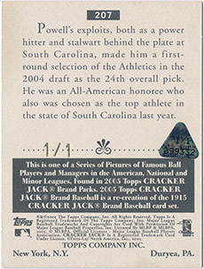 ![]() 2005 Topps Cracker Jack Mini White #207 Landon Powell 1/1 |