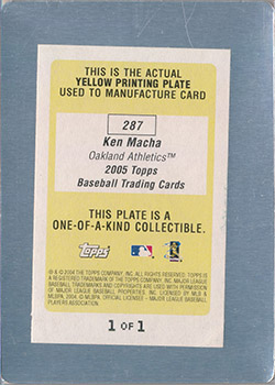 ![]() 2005 Topps Printing Plate Yellow #287 Ken Macha 1/1 |