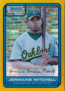 ![]() 2008 Bowman Chrome Draft Prospects Gold Refractors #BDPP77 Cliff Pennington 44/50 |
