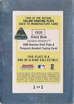 ![]() 2006 Bowman Chrome Draft Futures Game Prospects Printing Plate Yellow #FG35 Travis Buck 1/1 |