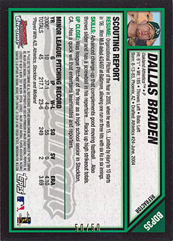 ![]() 2005 Topps Black #421 Justin Duchscherer 41/54 |