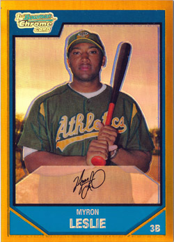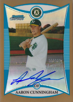 ![]() 2008 Bowman Chrome Prospects Gold Refractors Autograph #BCP275 Aaron Cunningham 06/50 |