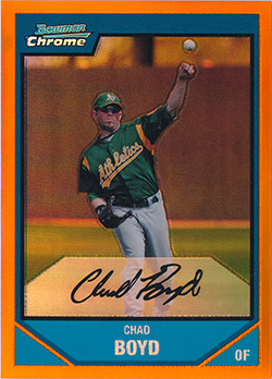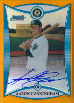 ![]() 2008 Bowman Chrome Prospects Orange Refractors Autograph #BCP275 Aaron Cunningham 03/25 |