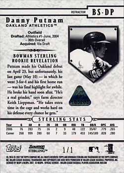 ![]() 2007 Bowman Sterling Red Refractors #BS-DP Danny Putnam RC 1/1 |
