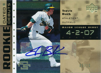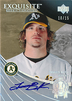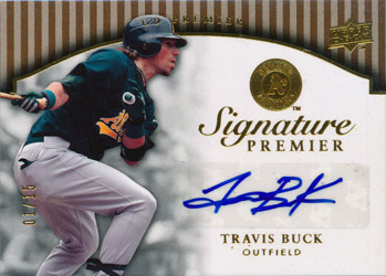 ![]() 2008 Upper Deck Premier Signature Premier Gold #SP-TB Travis Buck 01/15 |