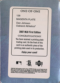 ![]() 2007 Upper Deck First Edition Printing Plate Magenta # 128 Dan Johnson 1/1 |