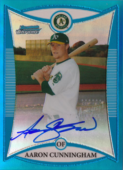 ![]() 2008 Bowman Chrome Prospects Blue Refractors Autograph #BCP275 Aaron Cunningham 036/150 |