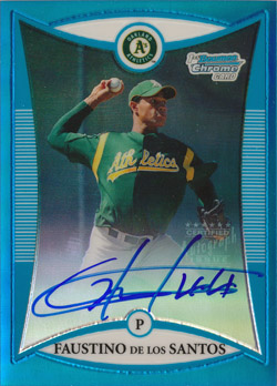 ![]() 2008 Bowman Chrome Prospects Blue Refractors Autograph #BCP245 Fautino de los Santos 041/150 |