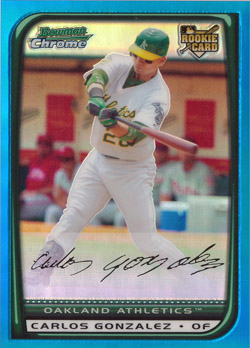 ![]() 2008 Bowman Chrome Draft Blue Refractors #BDP19 Carlos Gonzalez RC 08/99 |