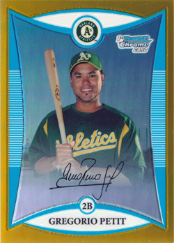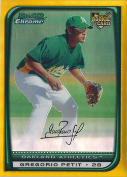 ![]() 2008 Bowman Chrome Draft Gold Refractors #BDP54 Gregorio Petit RC 05/50 |