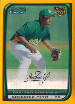 ![]() 2008 Bowman Chrome Draft Orange Refractors #BDP54 Gregorio Petit RC 04/25 |