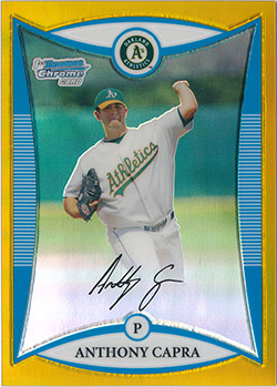 ![]() 2008 Bowman Chrome Draft Prospects Gold Refractors #BDPP56 Anthony Capra 49/50 |