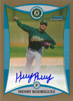 ![]() 2008 Bowman Chrome Prospects Gold Refractors Autograph #BCP278 Henry Rodriguez 02/50 |