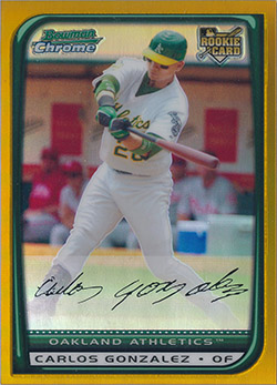 ![]() 2008 Bowman Chrome Draft Gold Refractors #BDP19 Carlos Gonzalez (RC) 21/50 |