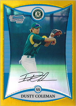 ![]() 2008 Bowman Chrome Draft Prospects Gold Refractors #BDPP46 Dusty Coleman 48/50 |