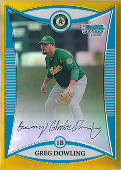 ![]() 2008 Bowman Chrome Prospects Gold Refractors #BCP103 Greg Dowling 05/50 |