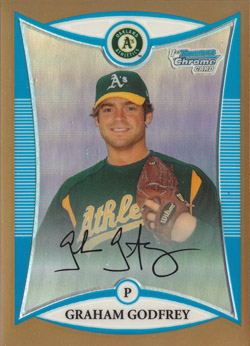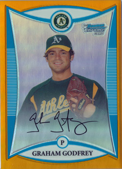 ![]() 2008 Bowman Chrome Prospects Orange Refractors #BCP184 Graham Godfrey 05/25 |
