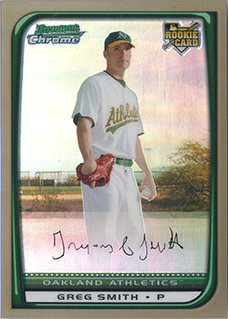 ![]() 2008 Bowman Chrome Gold Refractors #208 Greg Smith RC 04/50 |