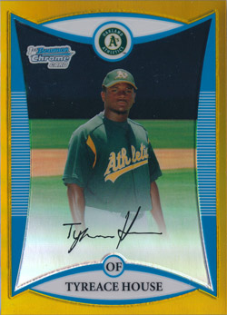 ![]() 2008 Bowman Chrome Draft Prospects Gold Refractors #BDPP8 Tyreace House 28/50 |