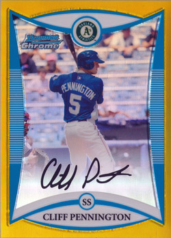 ![]() 2008 Bowman Sterling Gold Refractors #BS-CRPb Cliff Pennington (RC) 38/50 |
