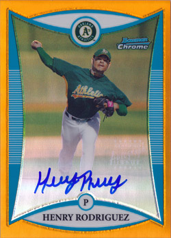 ![]() 2008 Bowman Chrome Prospects Orange Refractors Autograph #BCP278 Henry Rodriguez 19/25 |