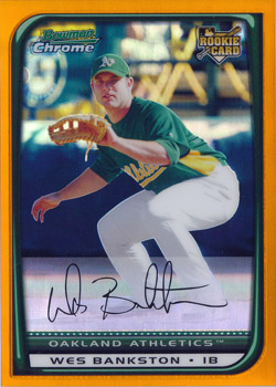 ![]() 2008 Bowman Chrome Draft Orange Refractors #BDP8 Wes Bankston RC 13/25 |