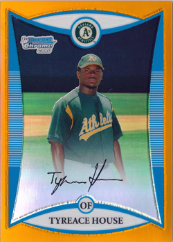 ![]() 2008 Bowman Chrome Draft Prospects Orange Refractors #BDPP8 Tyreace House 12/25 |