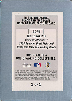 ![]() 2008 Bowman Draft Printing Plate Black #BDP8 Wes Bankston 1/1 |