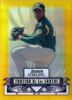 ![]() 2008 Bowman Sterling Prospects Gold Refractors #BSP-FS Fautino de los Santos 02/50 |
