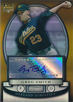 ![]() 2008 Bowman Sterling Gold Refractors Autograph #BS-GTS Greg Smith RC 40/50 |