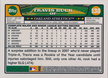 ![]() 2008 Topps Triple Threads Sapphire #51 Travis Buck 05/25 |
