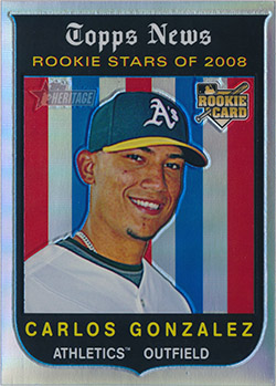 ![]() 2008 Topps Heritage Chrome Refractors #C265 Carlos Gonzalez RC 151/559 |