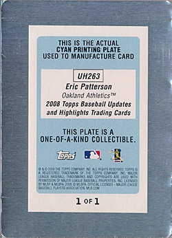 ![]() 2008 Topps Update Printing Plate Cyan #UH263 Eric Patterson 1/1 |