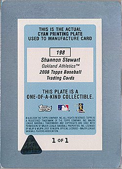 ![]() 2008 Topps Printing Plate Cyan #198 Shannon Stewart 1/1 |