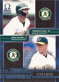 ![]() 2000 Pacific Omega #201 Terrence Long/Mark Mulder 538/999 |