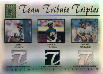 ![]() 2003 Topps Tribute Contemporary Team Triple Relics #TTT-CTM Chavez/Tejada/Mulder |