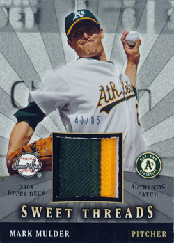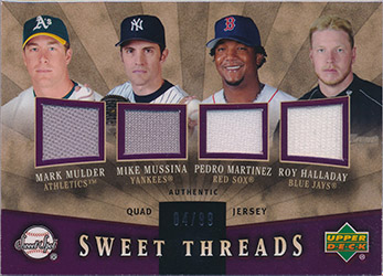 ![]() 2004 Sweet Spot Sweet Threads Quad #STQ-MMMH Mulder/Mussina/Martinez/Halladay 04/99 |