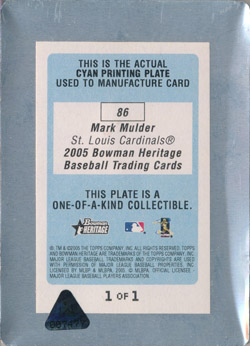 ![]() 2005 Bowman Heritage Printing Plates Cyan #86 1/1 |